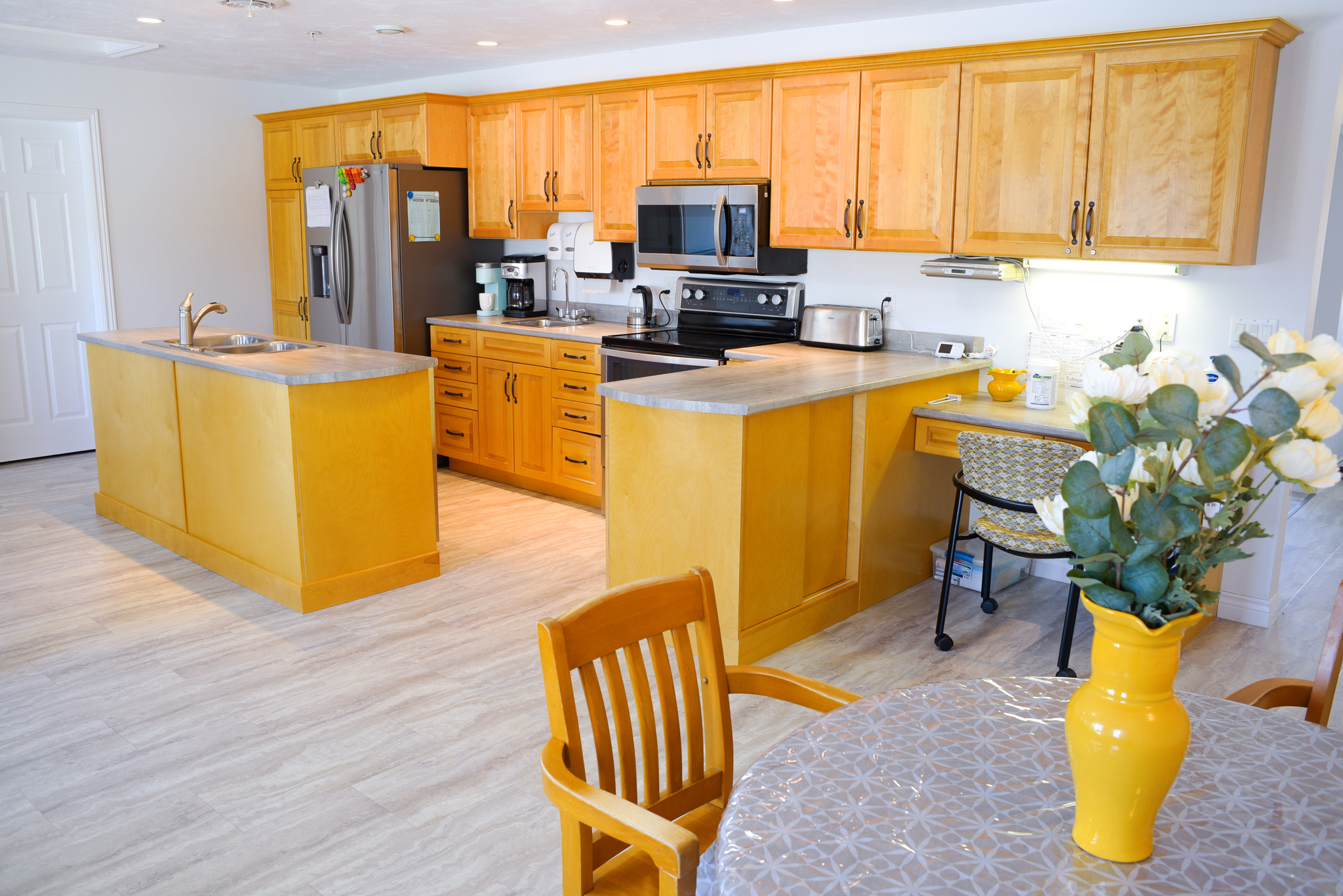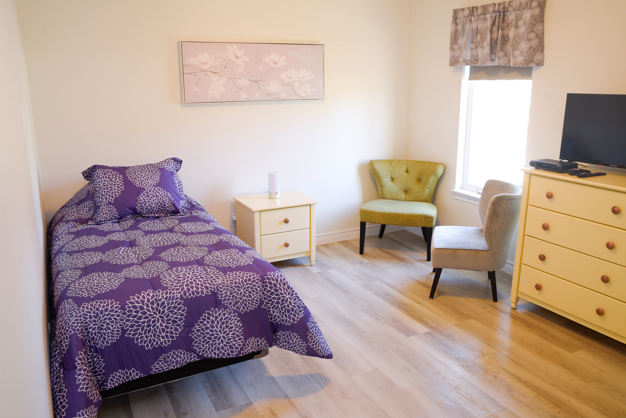 Our community is made up of 5 small homes which include large secured backyards with gardens and walking paths. To the best of our ability we schedule our care team in a dedicated home so our residents, their families and care team can build meaningful and trusting relationships. There is 1 certified caregiver for every 3 residents. Our structural layout, customized care packages, daily activities, and trained team members is how ProTem offers true person centered care to our residents and their families.